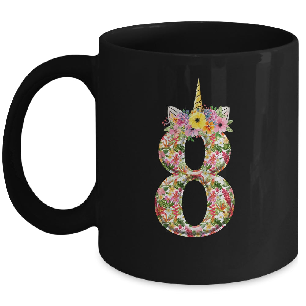 8th Birthday Girl 8 Years Old Awesome Unicorn Flower Youth
