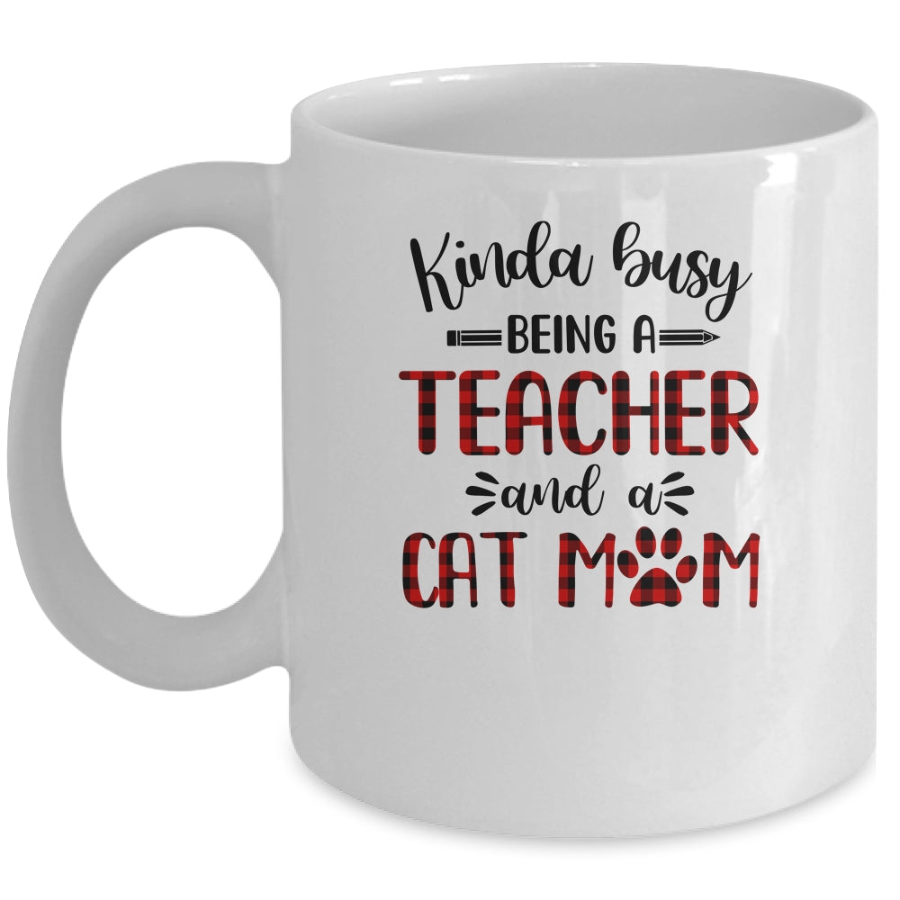 Kinda Busy Being A Teacher And A Cat Mom Red Plaid
