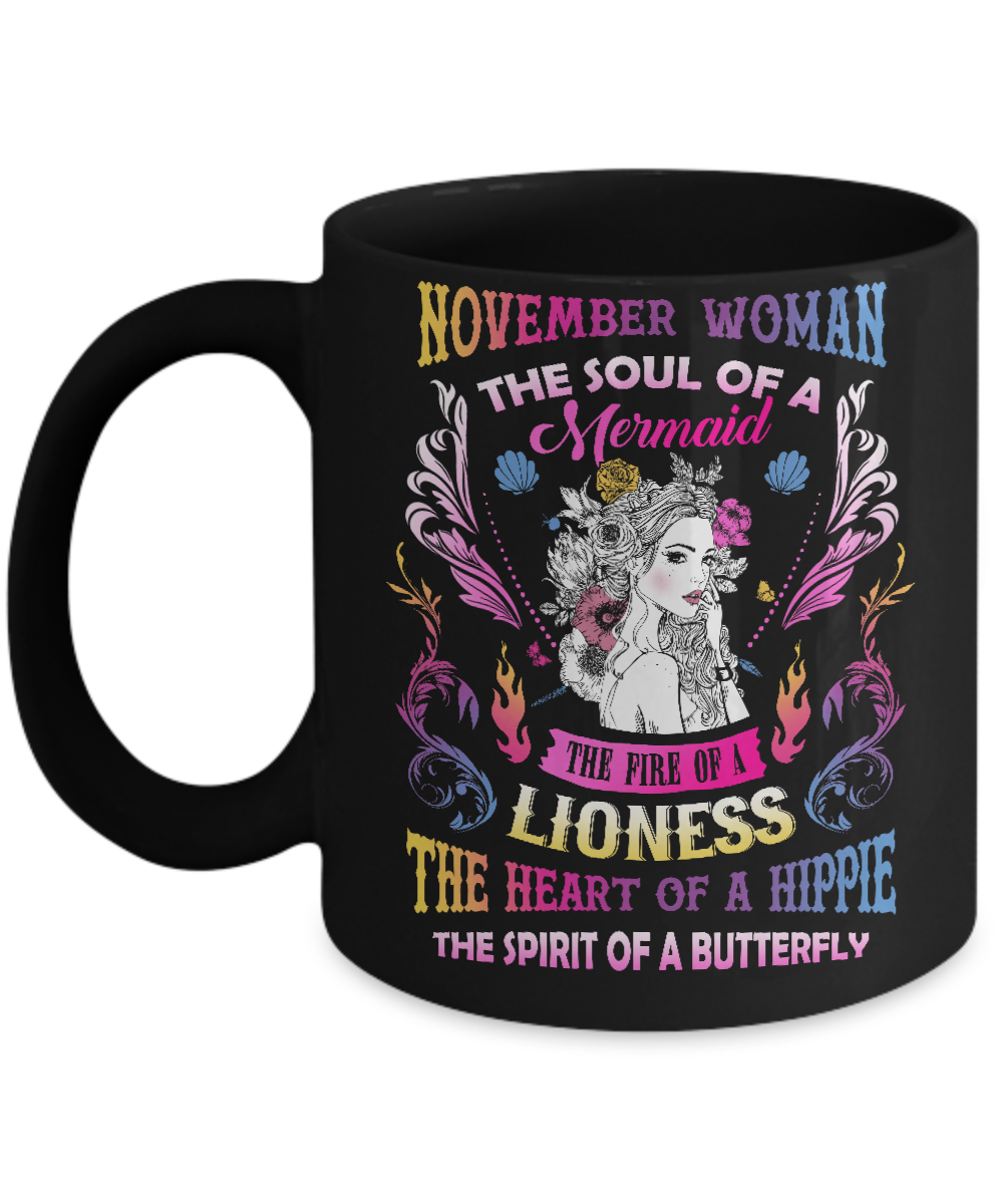 November Woman The Soul Of A Mermaid The Fire Of A Lioness The Heart Of A Hippie The Spirit Of A Butterfly Birthday Birthday Shirt & Tank Top