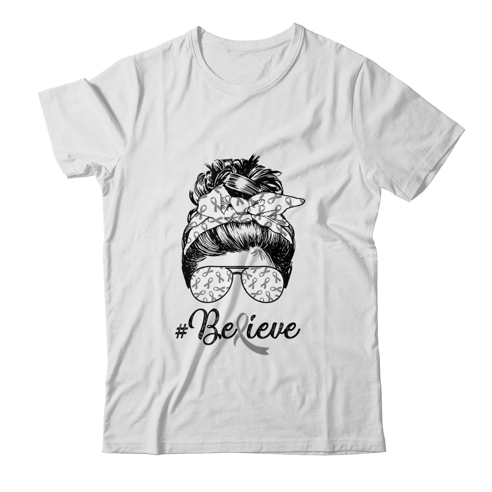 Brain Cancer Awareness Messy Bun Warrior Believe Grey Ribbon Mug