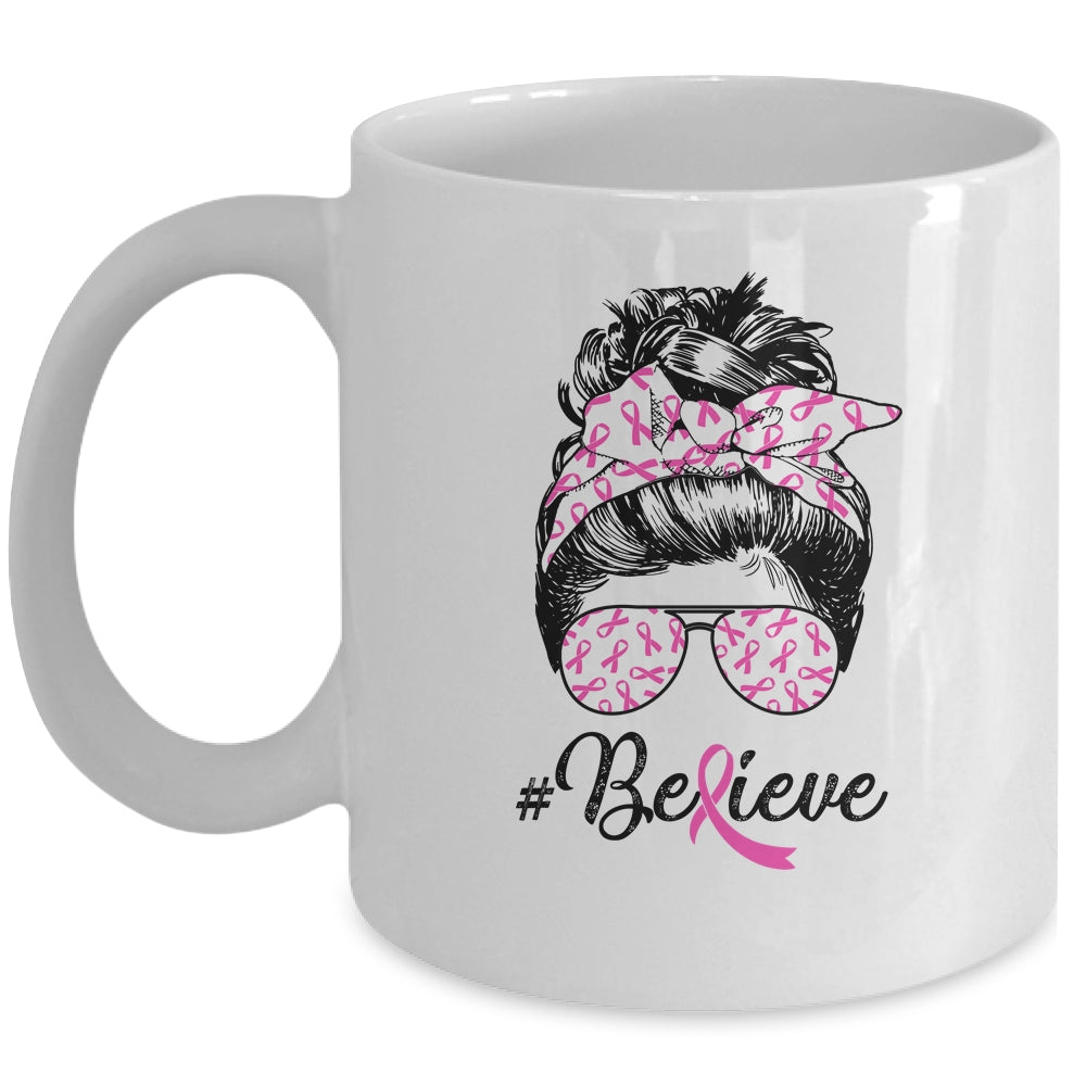 Breast Cancer Awareness Messy Bun Warrior Believe Pink