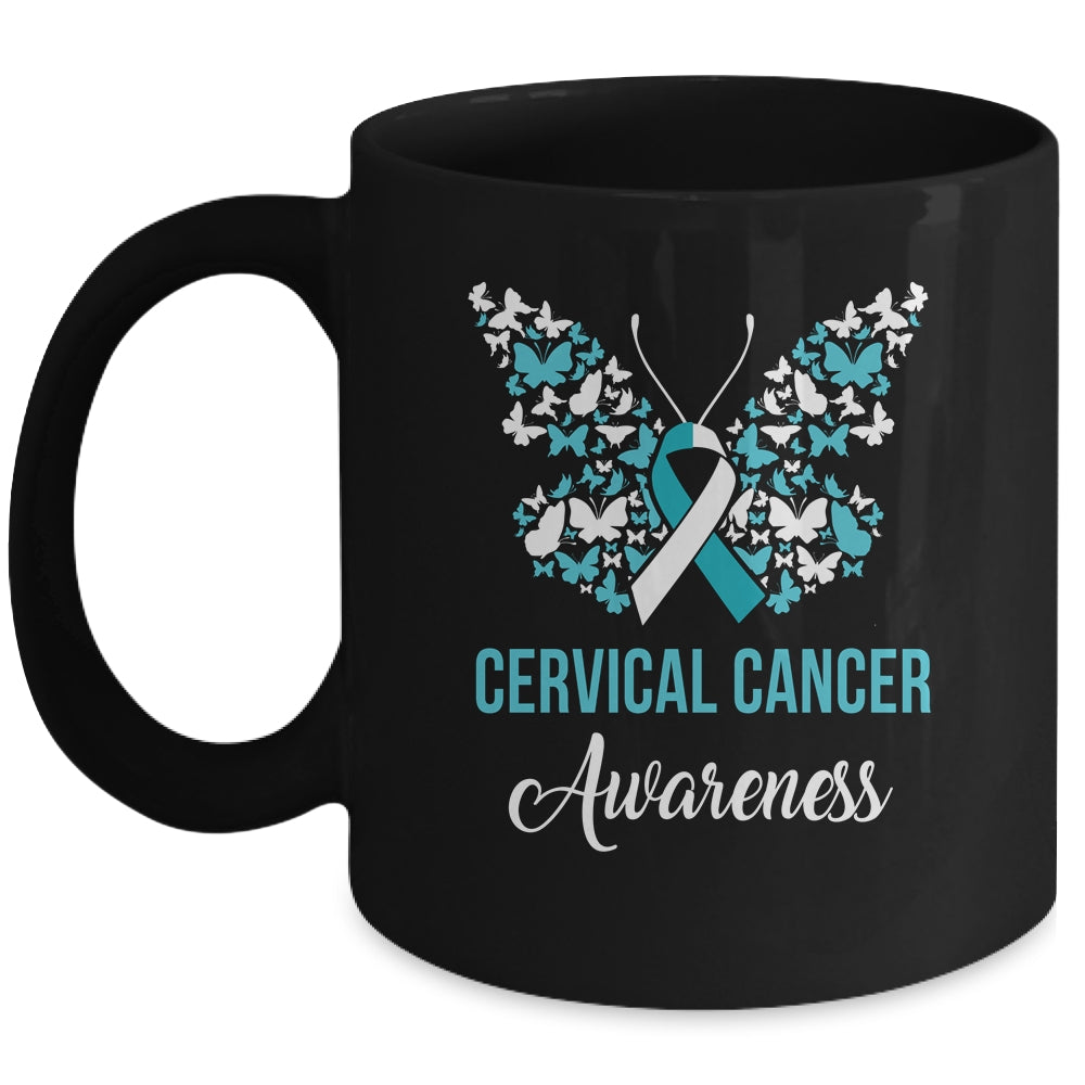Butterfly Cervical Cancer Awareness Month White Teal Ribbon