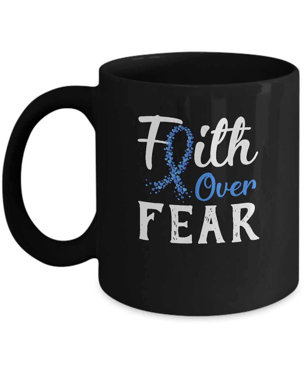 Colon Cancer Awareness Blue Ribbon Faith Over Fear