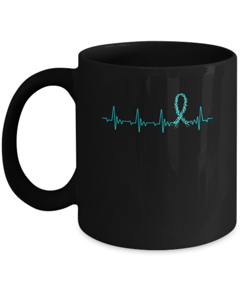 Ovarian Cancer Awareness Teal Ribbon Heartbeat