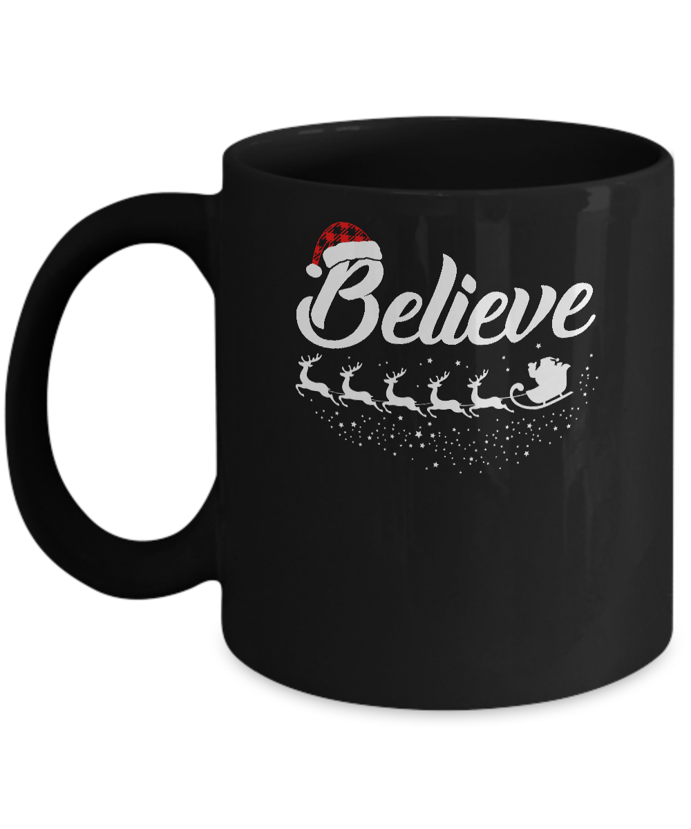 Believe Christmas Gifts Santa Hat Buffalo Plaid