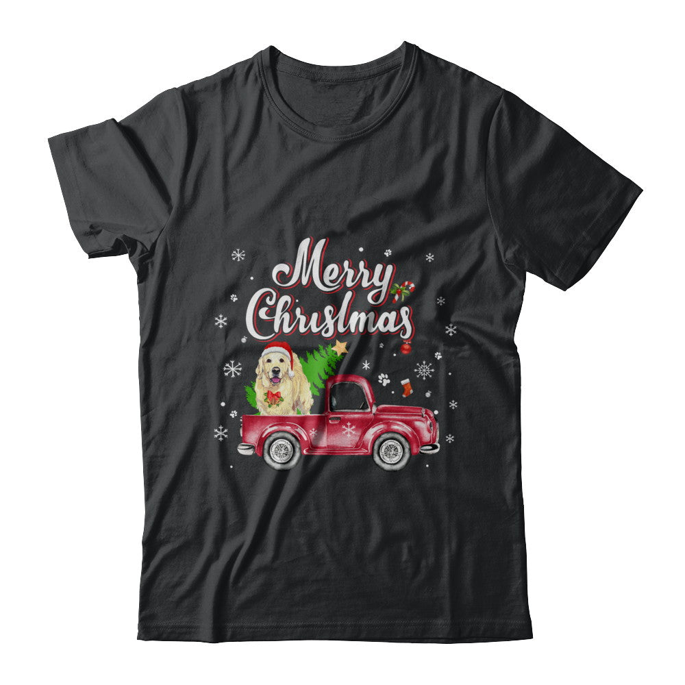 Golden Retriever Rides Red Truck Christmas Pajama Mug