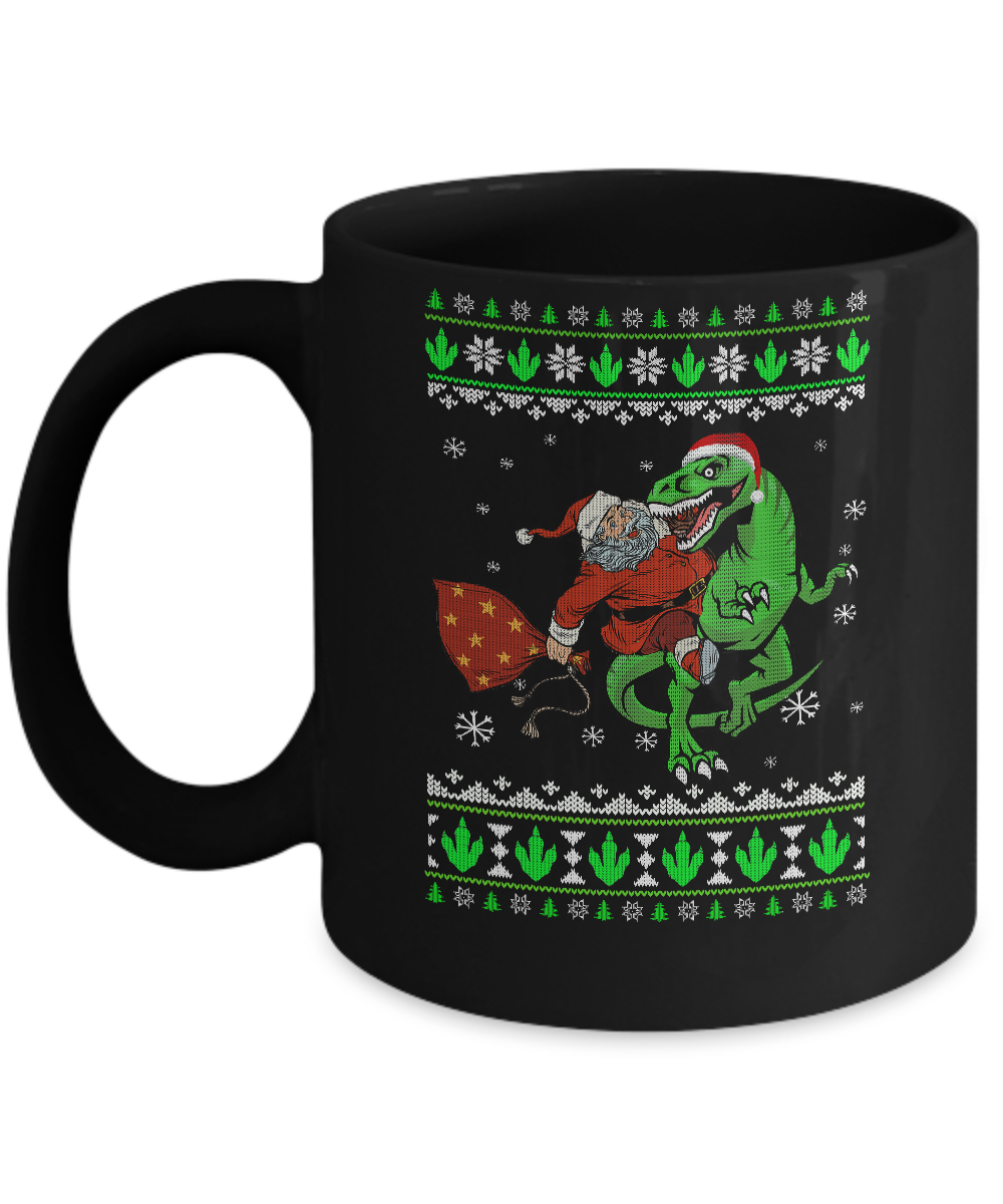 Santa Riding Dinosaur T-Rex Ugly Christmas Sweater