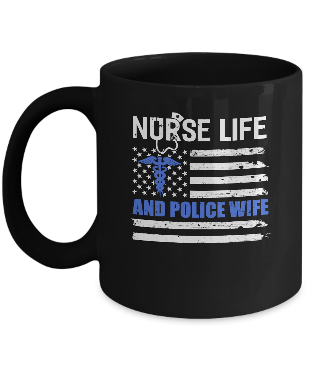 Nurse Life And Police Wife American Flag Vintage Women Gift