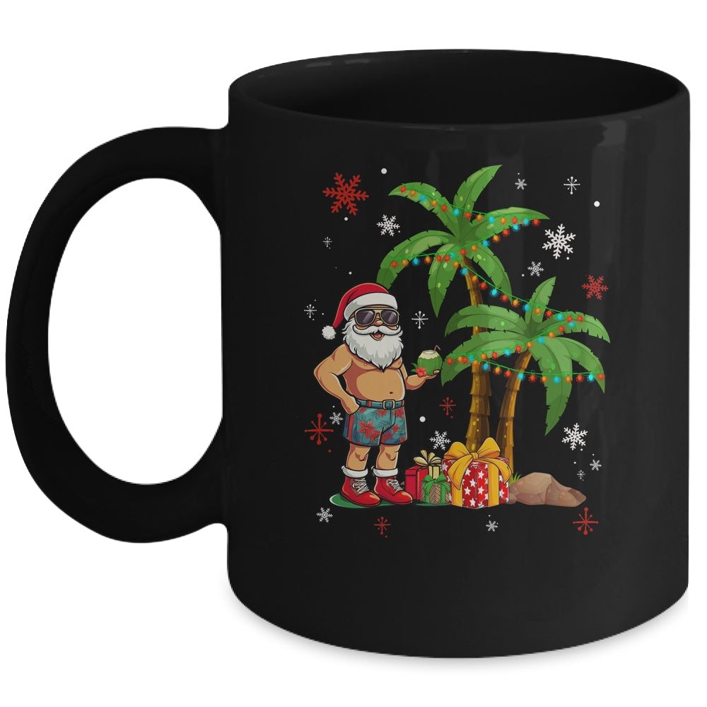 Santa Hawaiian Hawaii Christmas Palm Tree Lights Xmas Funny