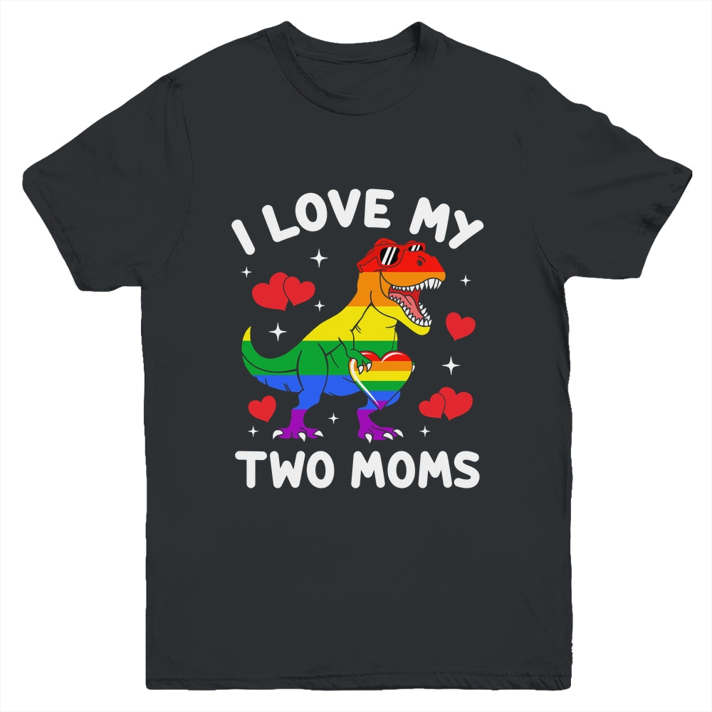 Gay Pride I Love My Two Moms Dino Lesbian LGBTQ Ally Rainbow Mug