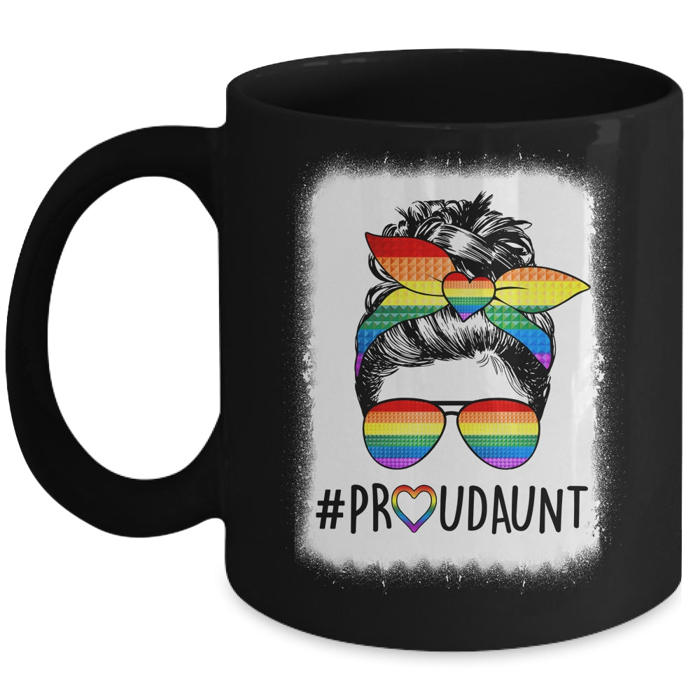 Proud Aunt Messy Bun Rainbow LGBT Mom LGBT Gay Pride LGBTQ