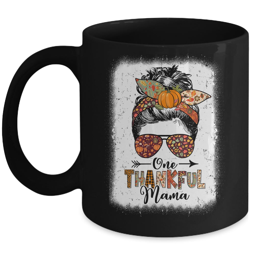 Funny Messy Bun One Thankful Mama Fall Autumn Thanksgiving